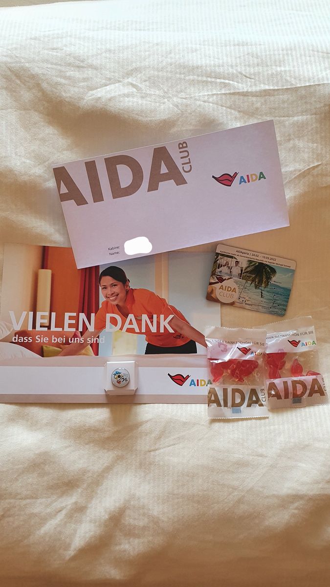 Wir hatten gestern auf der Kabine insgesamt 5 Magnete: 2x mit Aida Club, 2x einen grossen Magneten mit der Route und dann nochmal einen Großen mit der Route.