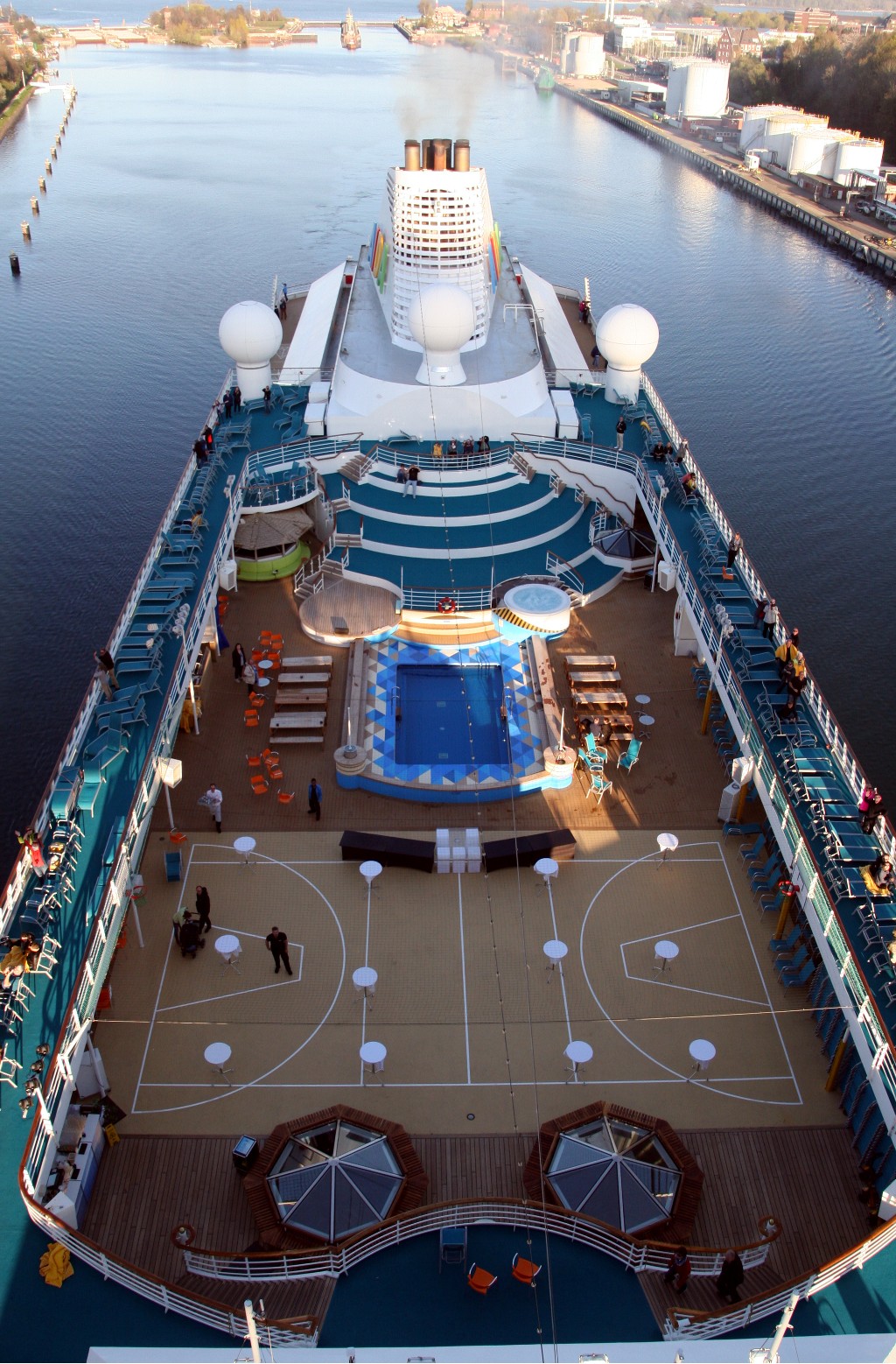 Carafahrerinnen/Carafahrer genießen an Oberdeck bei Bilderbuchwetter die Nordostseekanalpassage mit der AIDAcara