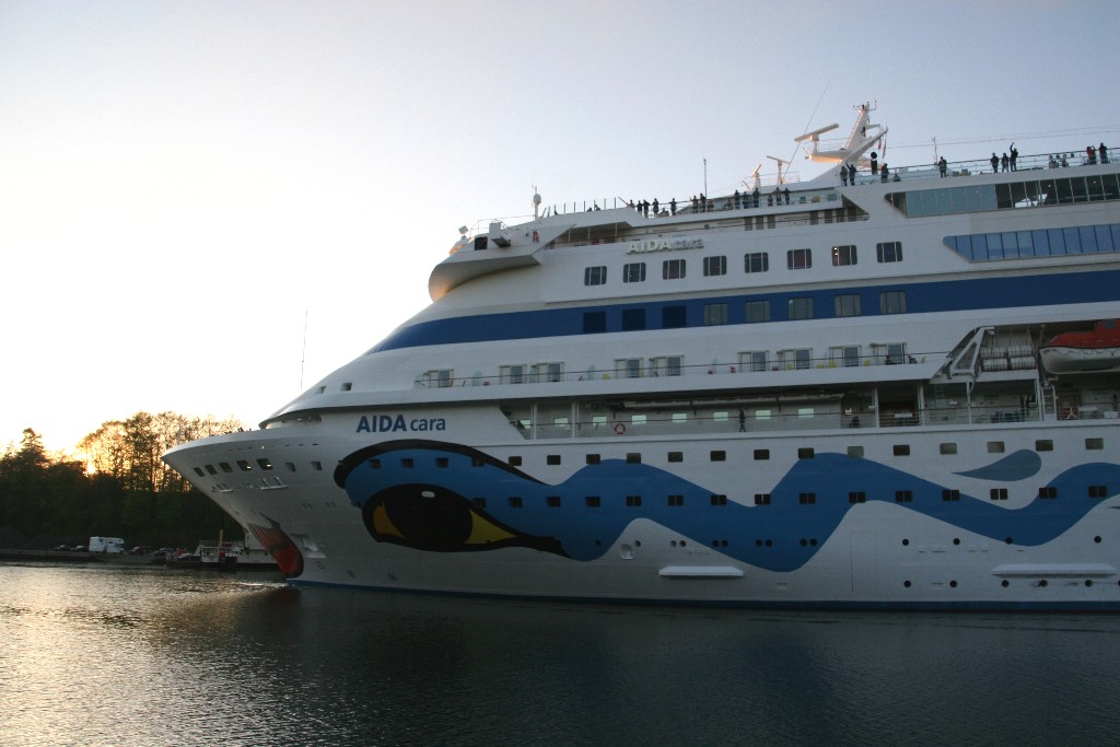 Das waren die letzten Bilder von der Nordostseekanalpassage der AIDAcara an dem Abend