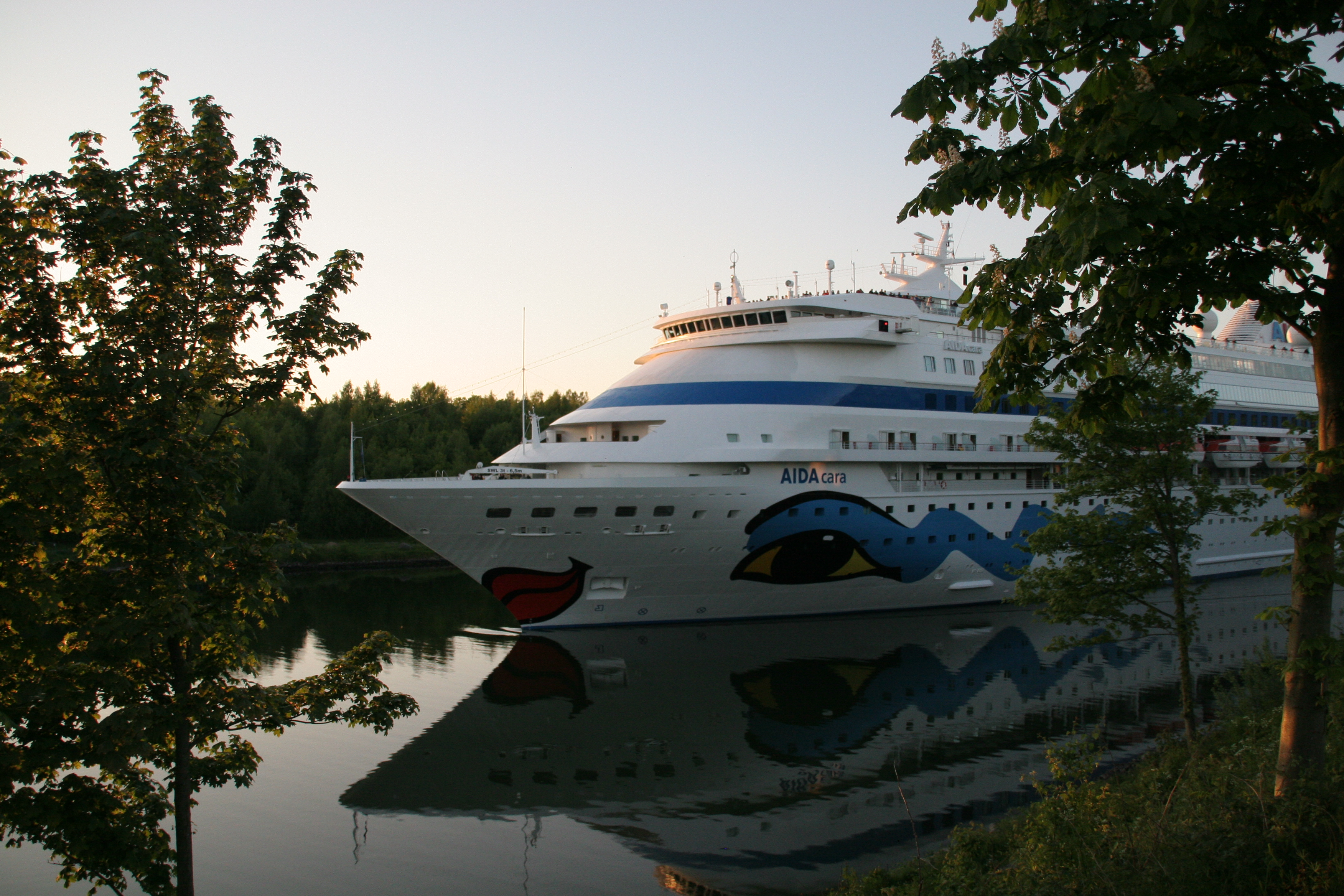 Später gibt es weitere Bilder von der AIDAcara im Nordostseekanal