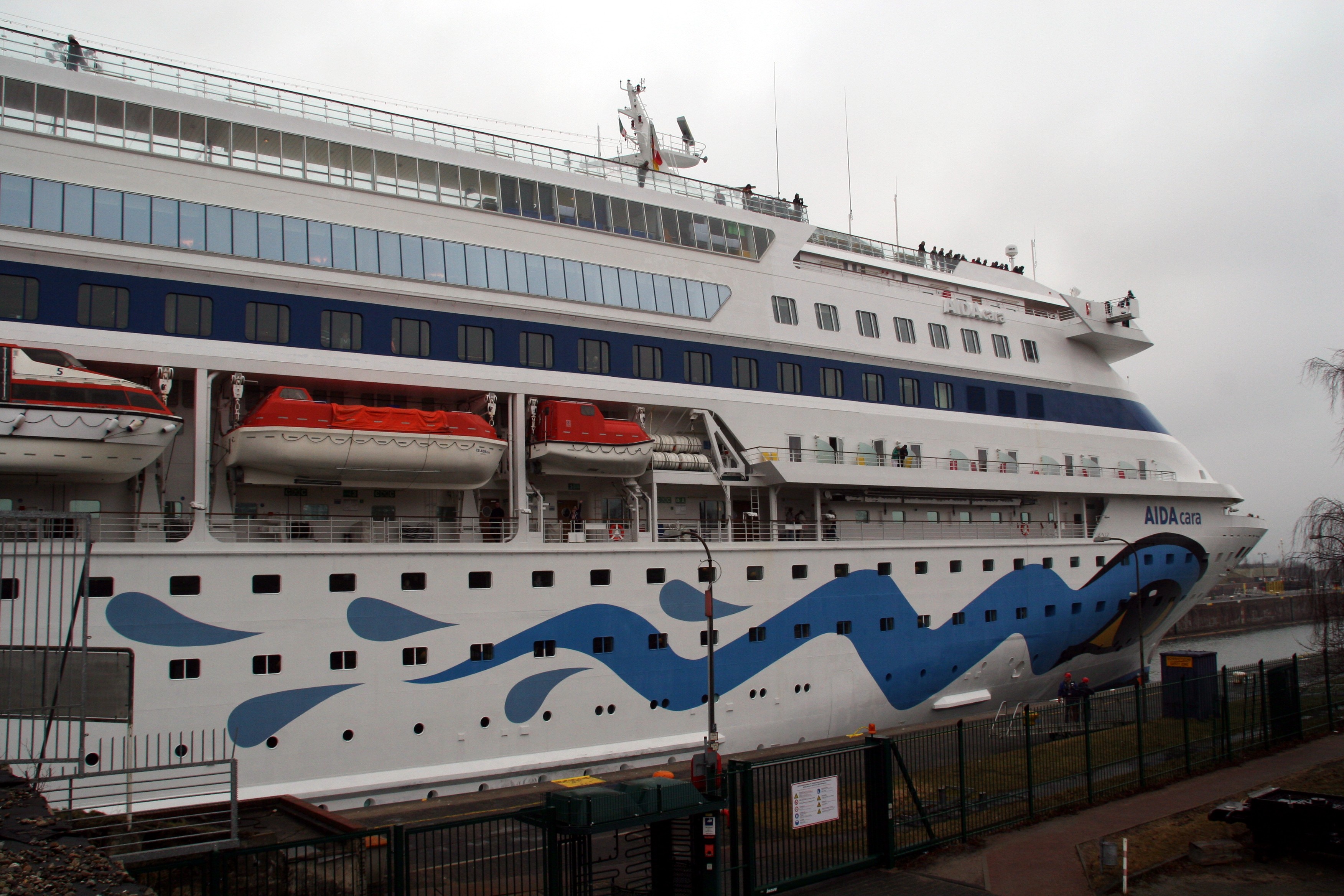 Die AIDAcara fährt in die südliche Schleusenkammer vom Nordostseekanal in "Kiel-Holtenau"