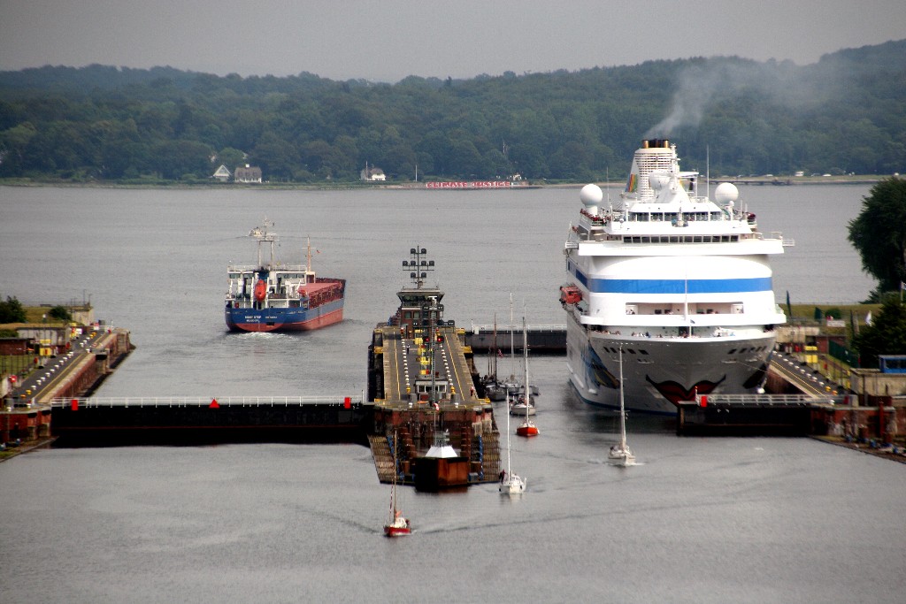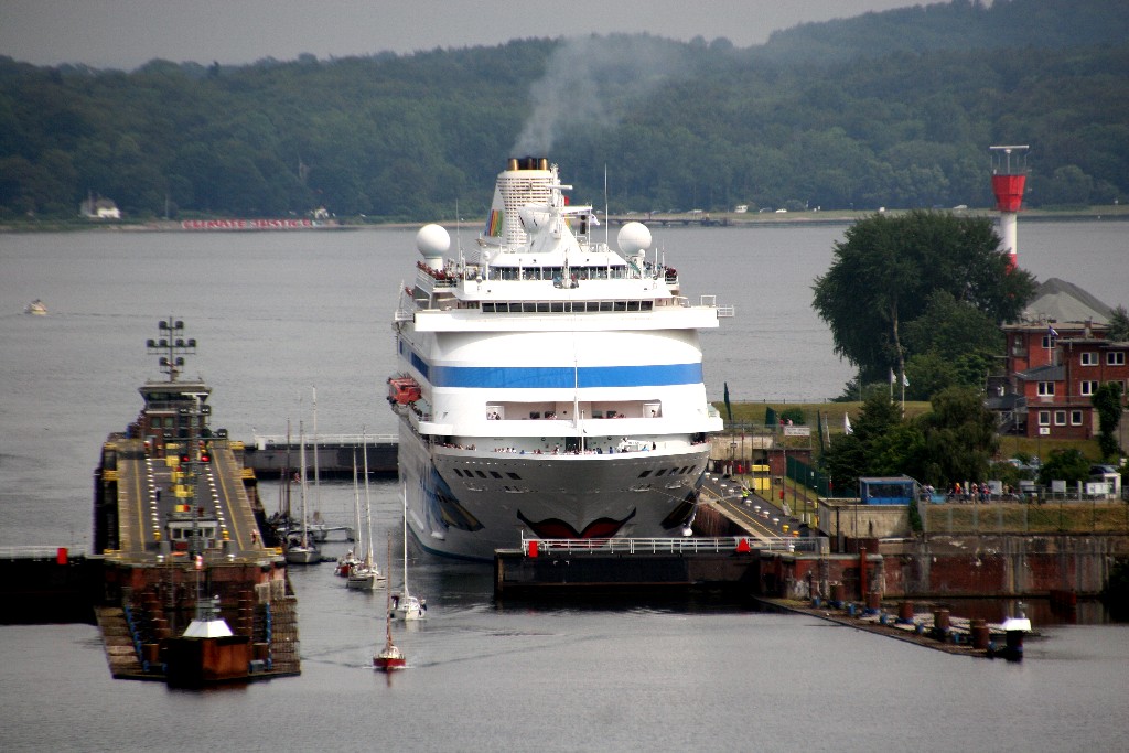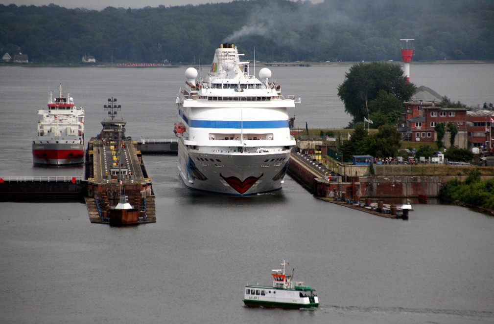 Faszinierende Impressionen begleiten die AIDAcara während ihrem Schleusenmanöver zur Südschleuse vom Nordostseekanal