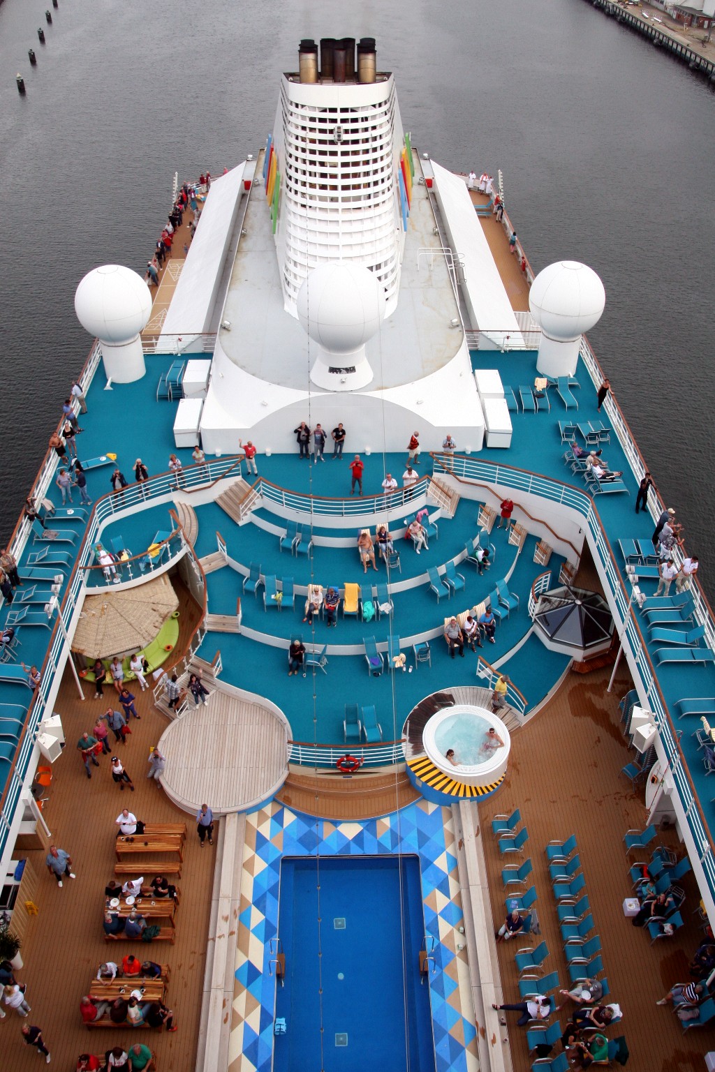 Von der "Holtenauer Hochbrücke" habe ich ein spektakukläres Panorama auf das Pooldeck der AIDAcara