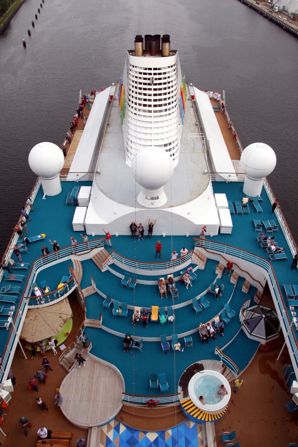 Von der "Holtenauer Hochbrücke" habe ich ein spektakukläres Panorama auf das Pooldeck der AIDAcara