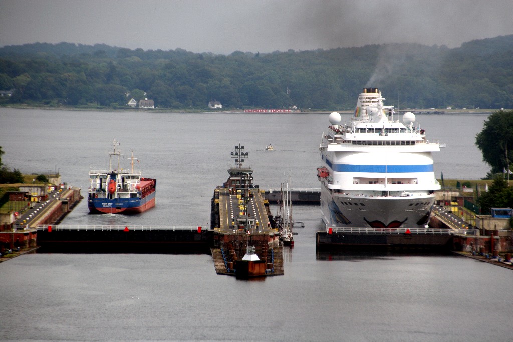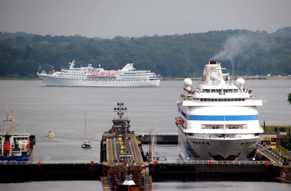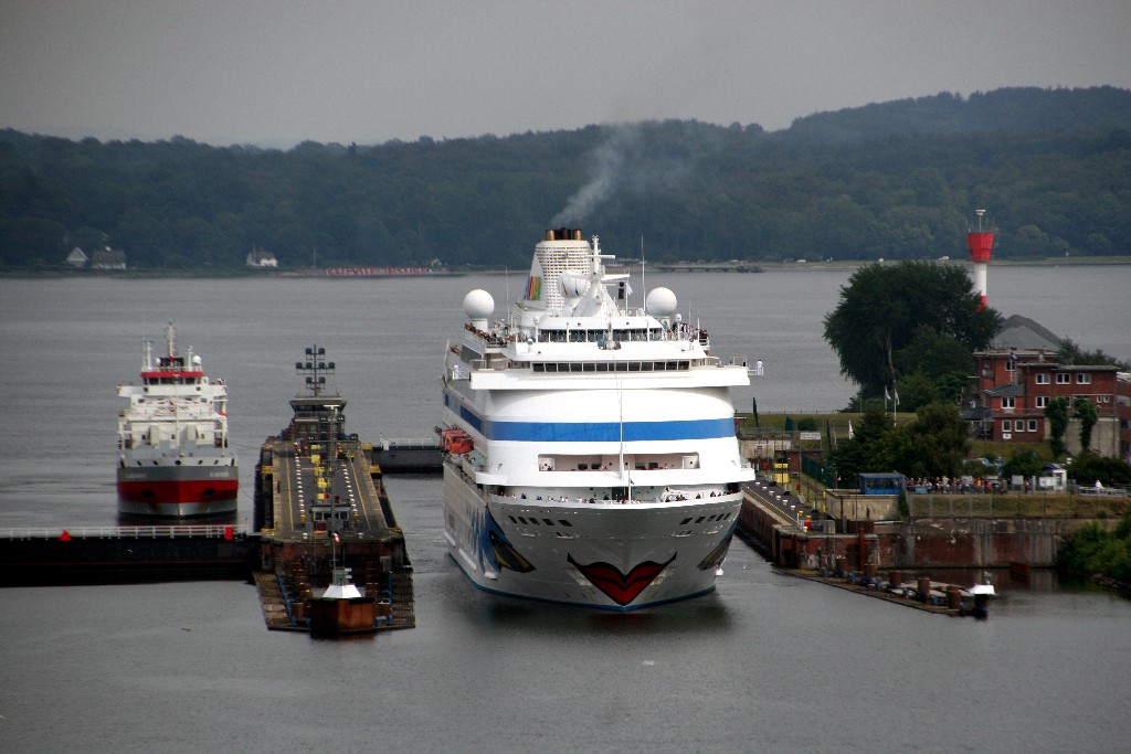Faszinierende Impressionen begleiten die AIDAcara während ihrem Schleusenmanöver zur Südschleuse vom Nordostseekanal