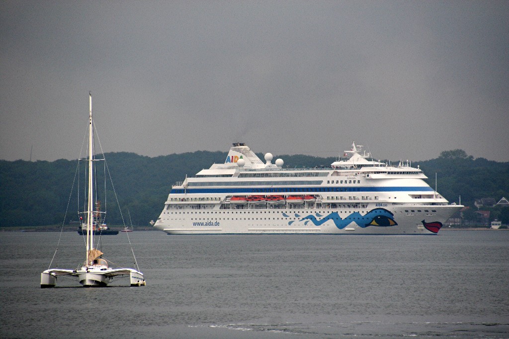 Die "Color Fantasy" fährt ihre Revierfahrt auf der "Kieler Förde" in Höhe der in Warteposition liegenden AIDAcara