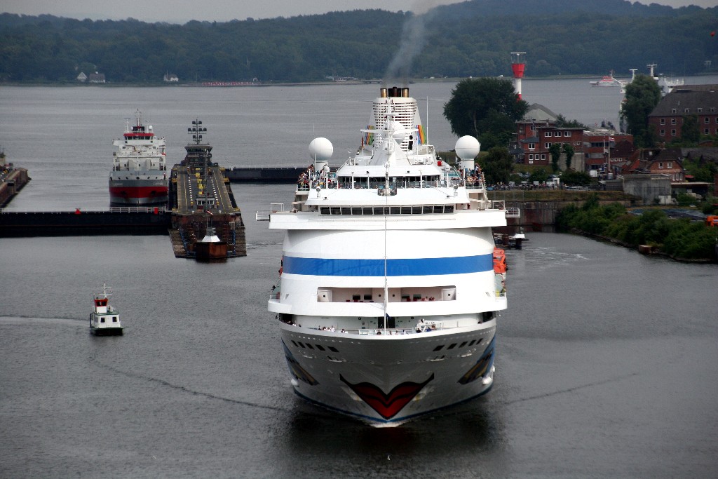 Faszinierende Impressionen begleiten die AIDAcara während ihrem Schleusenmanöver zur Südschleuse vom Nordostseekanal