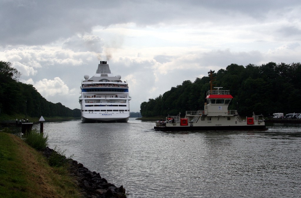 Heute gibt es auch noch Bilder von der AIDAcara im Nordostseekanal in Höhe der Kanalfähre "Landwehr" und danach gibt es die AIDAluna auf der "Kieler Förde" am 10.07. zu sehen