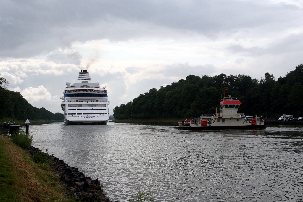 Heute gibt es auch noch Bilder von der AIDAcara im Nordostseekanal in Höhe der Kanalfähre "Landwehr" und danach gibt es die AIDAluna auf der "Kieler Förde" am 10.07. zu sehen