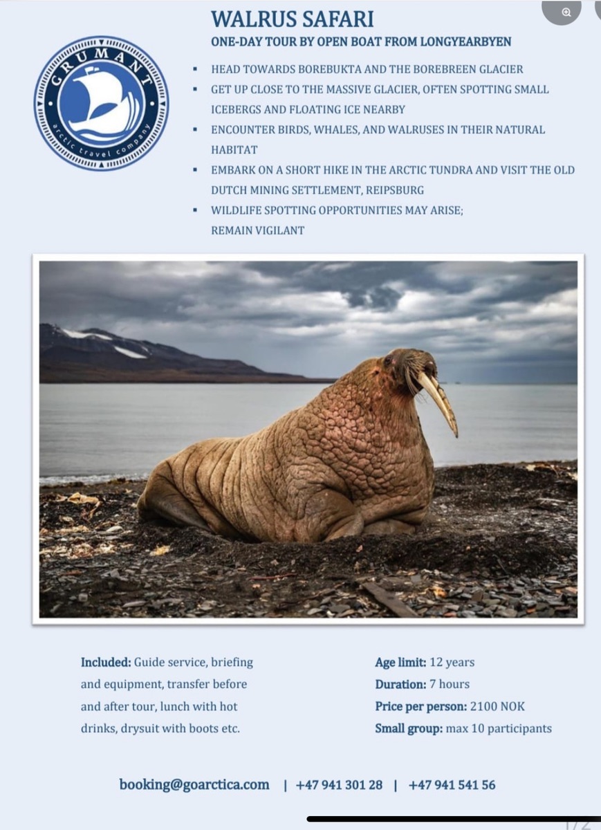 Am 02.08.2024 waren wir mit AIDAluna bei fantastischem Wetter in Longyearbyen. Im Vorfeld hatten wir eine Walrosssafari bei „grumant arctic travel company“ gebucht.