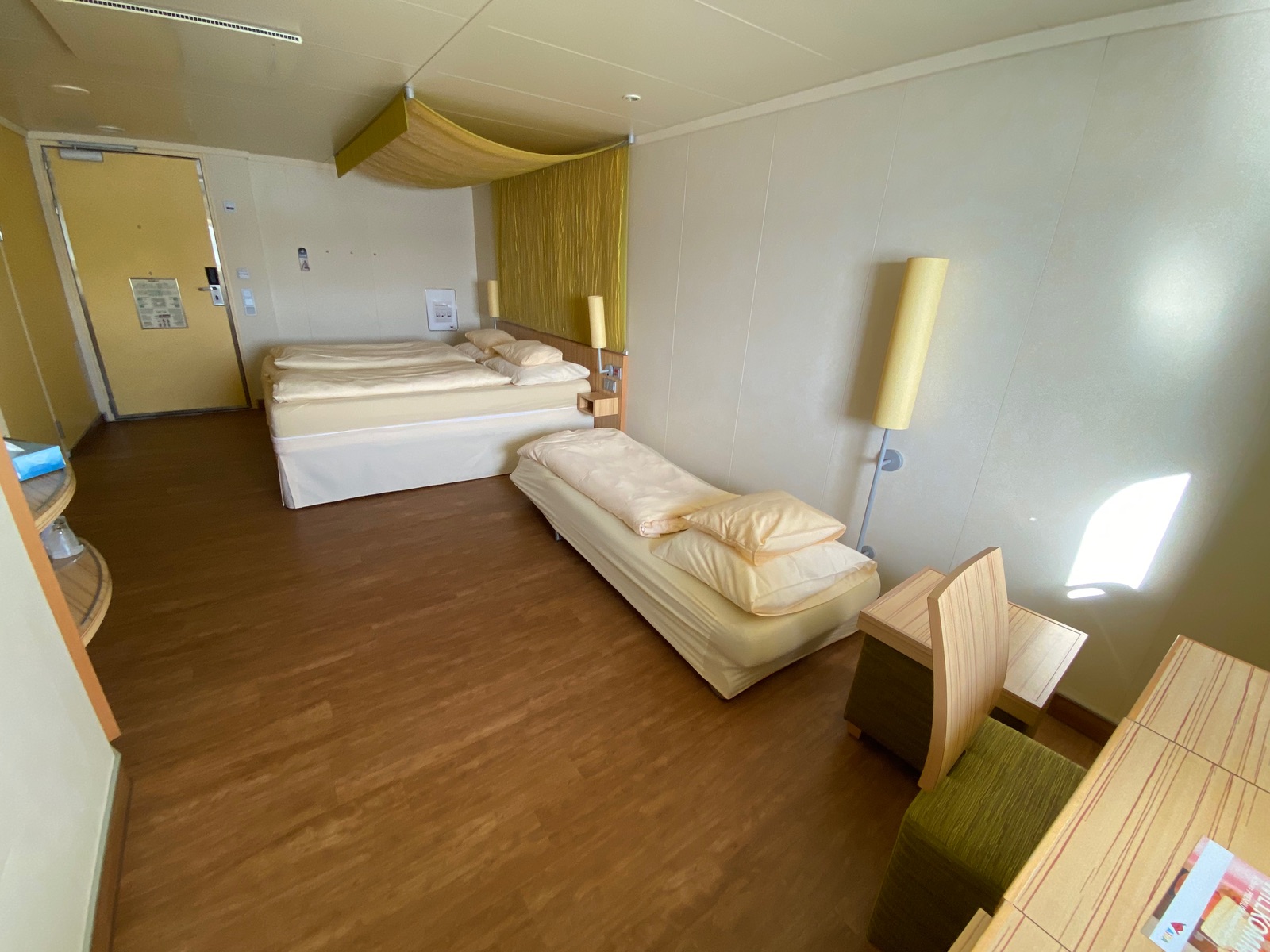 Die Kabine ist mit 27qm sehr geräumig. Praktisch ist auch