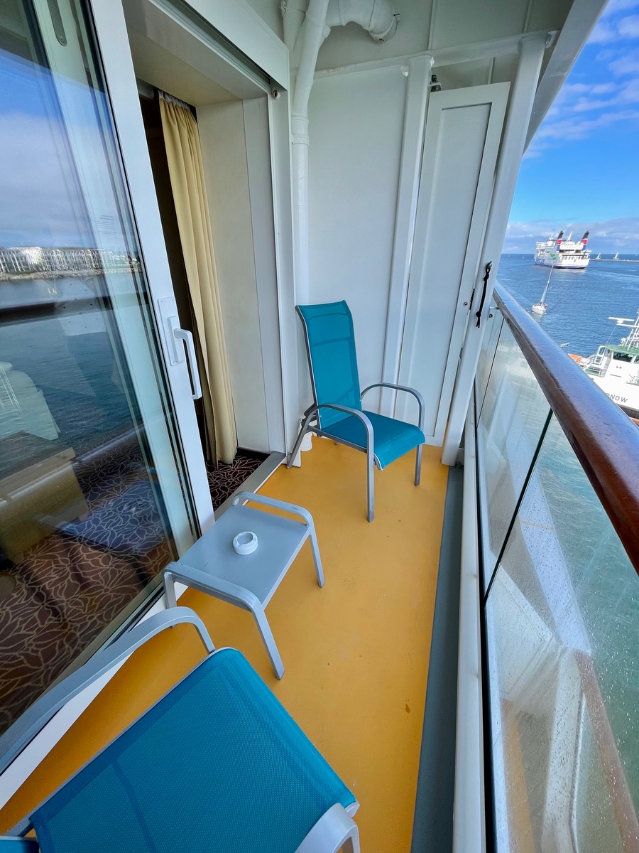 Der Balkon (Glasbrüstung) hat die "Standard-Größe", für zwei Personen gerade ausreichend, bei 3 Personen wird's schon etwas enger.