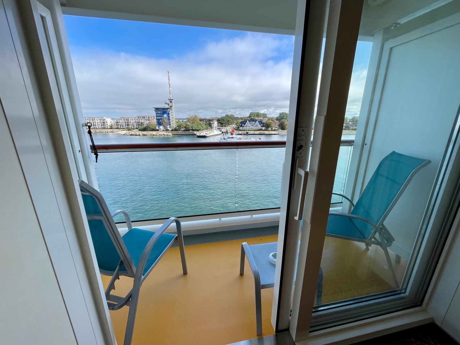 Die Kabine 7109 liegt sehr ruhig im vorderen Teil des Schiffes auf der Steuerbordseite, hat einen Balkon mit Hängematte, 2 Stühlen und 1 Hocker. Es gibt sehr reichlichen Stauraum für die mitgebrachten Utensilien, die Doppelbetten stehen zusammen. Der (einzige) Sessel kann zum 3. Bett auseinandergefaltet werden. Ein kleiner Hocker kann als Tisch verwendet werden. Bad mit Duschkabine ist ausreichend groß und hat auch genügend Ablageflächen. Fön vorhanden, versteckt in der Schreibtischschublade! Wir würden die Kabine jederzeit wieder nehmen, man sieht vom Bett aus das Meer durch die Glasabtrennung der Reeling.