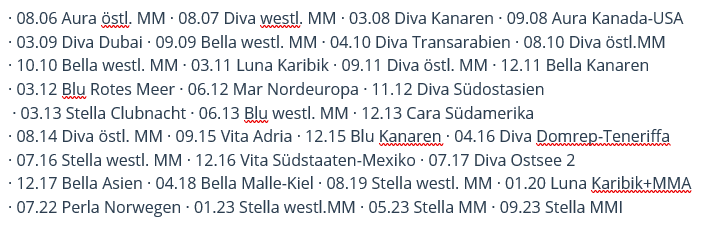 Die Balkonkabinen sind schon wech. Aber ist ja eh etwas kühl um die Zeit. Haltet euch ran, sonst wird's nix mehr.