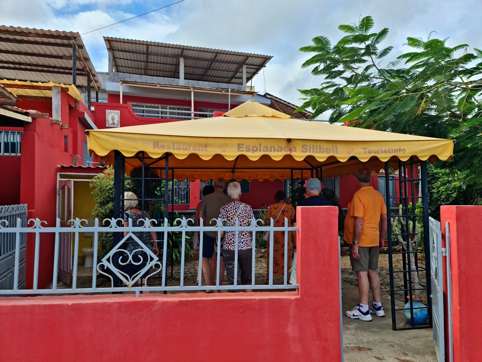 Sybille wartete am Hafenausgang pünktlich und mit Infoschild auf uns. Im Kleinbus ging es ins Stadtzentrum. Dort wurden erst die Kirche, die Einkaufsstrasse sowie der Markt in der Markthalle besucht. Die Abwechslung zwischen laufen und fahren war den Tag über gut ausgewogen. Sybille ist eine überaus angenehme, freundliche und kompetente Reiseführerin. Die Insel erkundeten wir mit Stops zum fotografieren...bizzarre Berge, fruchtbare Täler bilden so faszinierende Landschaften. Die Menschen und ihre Art zu leben hat uns sehr beeindruckt. An Sybilles Haus in Calheta haben wir Mittagspause gemacht. Ihr Restaurant betreiben sie nicht mehr, jedoch hat sie für uns auf dem Markt frisches einheimisches Gemüse/Obst, fantastischen Ziegenkäse eingekauft, ihre Angestellten hatten die Tafel bereits gedeckt und um weitere leckere regionale Spezialitäten erweitert. Das war toll. Am Nachmittag sind wir noch nach Tarrafal zum super Strand gefahren. Für nur einen Tag haben wir einen super Einblick in das Leben der Menschen bekommen, Sybille viele Löcher in den Bauch gefragt und viel Natur bestaunt... und als "verwöhnte Europäer" auch etwas nachdenklich geworden.