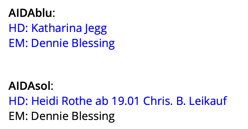 Hat jemand Infos zur Nachfolge von Tom auf AIDAnova Mitte Februar?
