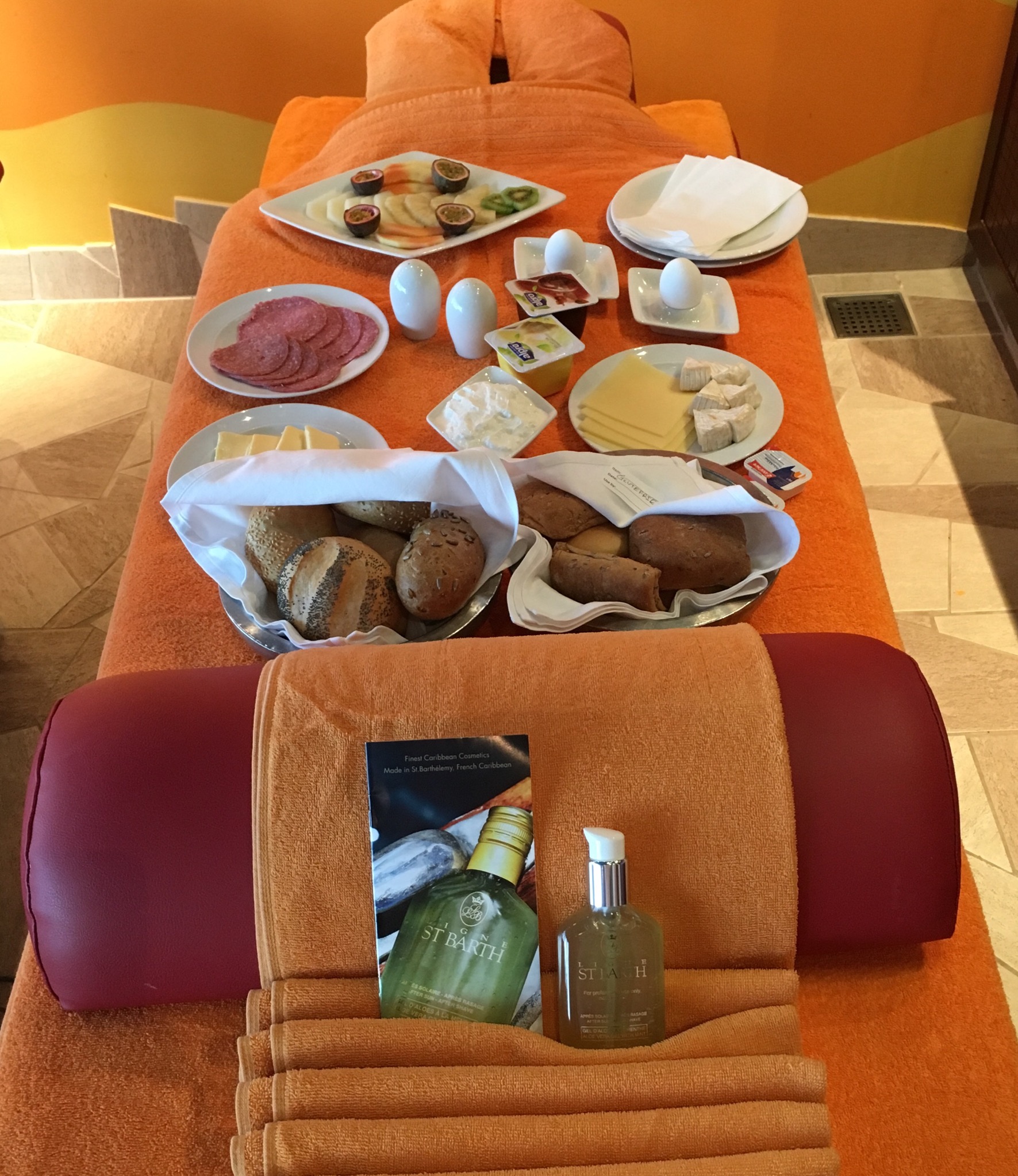 Sobald Sie die Welness Suite um 08:30 Uhr gebucht haben, beinhaltet dies ein umfangreiches Frühstück in der Suite.