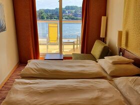 Kabine liegt direkt am hinteren Treppenhaus. Wenn keine Seegang ist die Kabine ruhig. Bei Seegang und über 16 Knoten gibt es in der linken Wand nach dem Schreibtisch ein knarrendes Gräusch. Vorsicht!!! Kabinentür schließt nicht immer von selbst. Kabine hat einen großen Balkon.