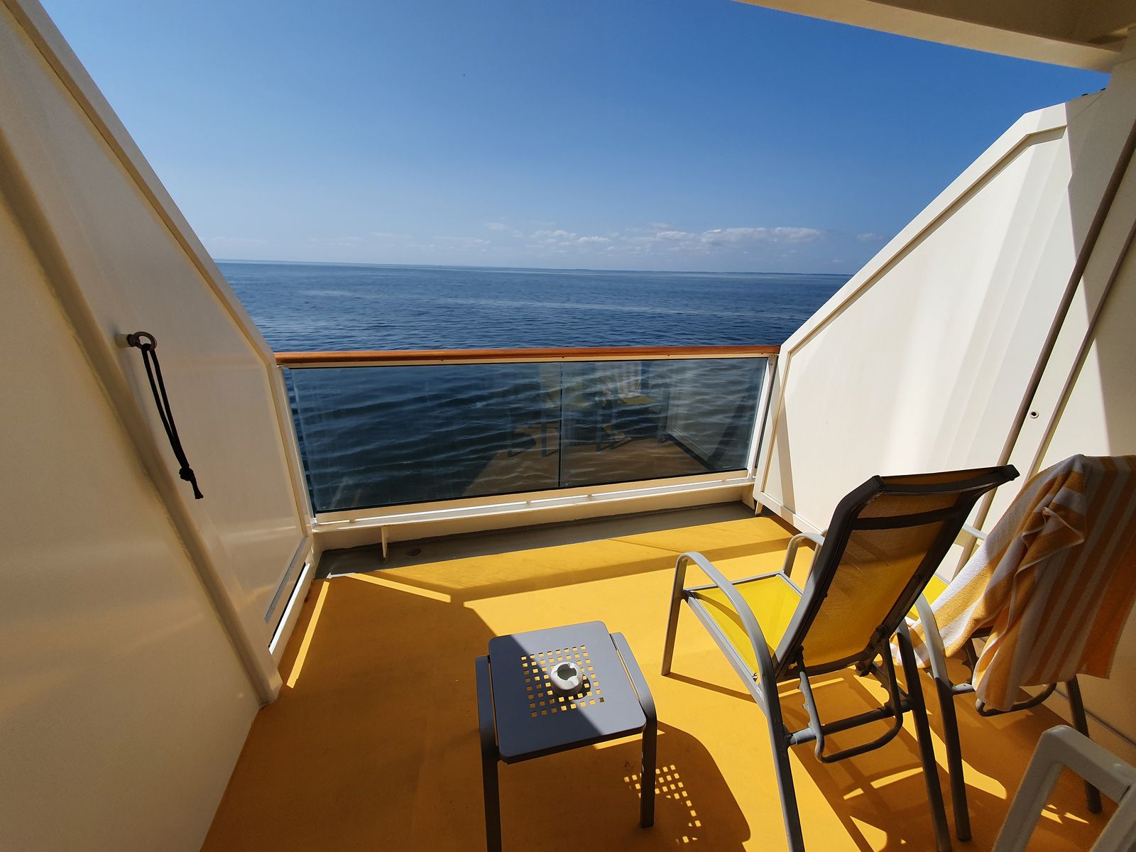 Kabine liegt direkt am hinteren Treppenhaus. Wenn keine Seegang ist die Kabine ruhig. Bei Seegang und über 16 Knoten gibt es in der linken Wand nach dem Schreibtisch ein knarrendes Gräusch. Vorsicht!!! Kabinentür schließt nicht immer von selbst. Kabine hat einen großen Balkon.