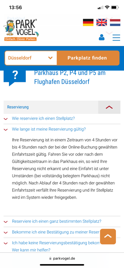 Hat schon jemand eine Parkplatz Buchung geändert, wir haben bestehende Buchung im P4 von 3:45 Uhr bis 5 Tage später 22:00 Uhr. Unser Flieger startet um 6:00 Uhr, aber durch die ganzen "Horro" Meldungen von den Abfertigungszeit schient uns das jetzt was knapp und ich würde gerne bei meiner betsehenden Buchung die Startzeit um 2 Stunden vorziehen.