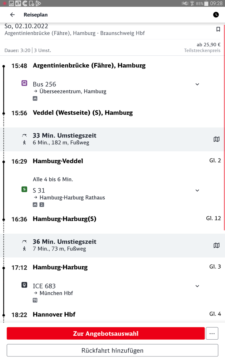 Der Fahrplan geht noch um ein umsteigen in Hannover kurz weiter, nicht dass jemand nach rechnet :lachzwink: