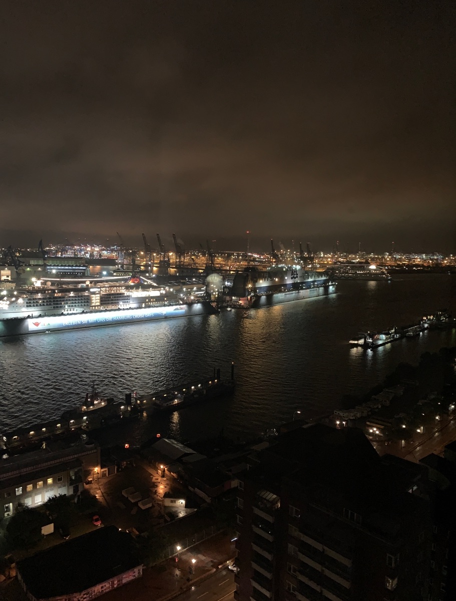 Die Perla siehst Du auf der Reise ja noch öfters… und der Blick vom Empire aus ist wirklich mega schön. Darfst nur nicht vergessen, am Abend vorher noch einen leckeren Drink in der Rooftop Bar zu nehmen. Wenn man ganz nach vorne durch geht, schaut man direkt auf die Blohm und Voss Werft herunter. Wir hatten in 2019 das Glück, dass dort die Europa 2 lag. Als Hotelgast darfst Du übrigens unten an den Schlangen, die sich abends am Aufzug zur Bar bilden, getrost vorbei gehen.