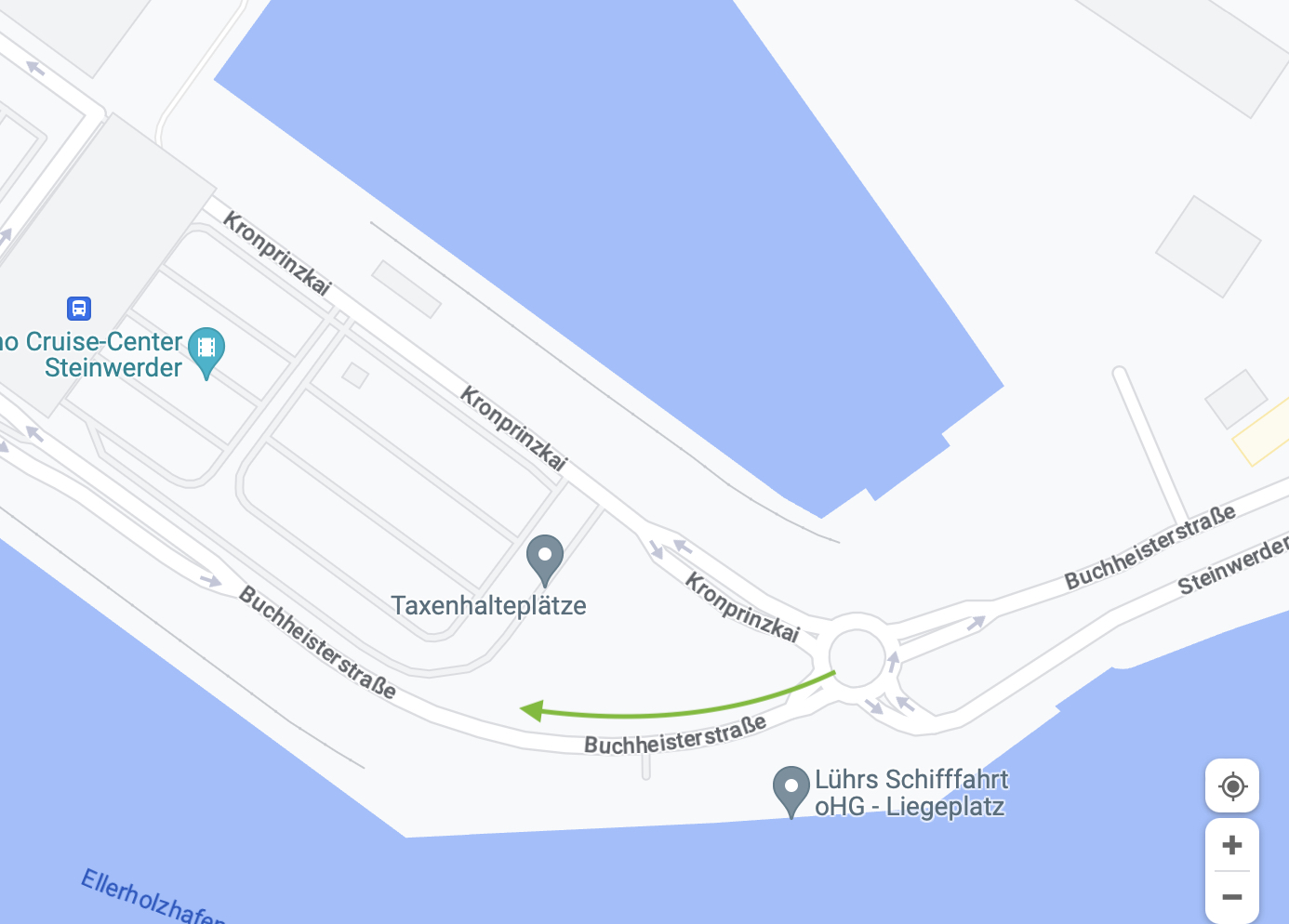 Genau. Nicht gleich am Kreisverkehr die erste Ausfahrt Richtung Terminal nehmen, sondern die zweite. Ich meine, es war vor Ort auch nochmal ausgeschildert (per Banner oder Schild). Einfach die Augen offen halten und ohne Stress fahren. Ich war das erste Mal mit dem Auto dort und fand es sehr entspannt - obwohl bei Anreise in Steinwerder die Bella stand (wir sind zur Aura geshuttlet) und bei Abreise die Perla.