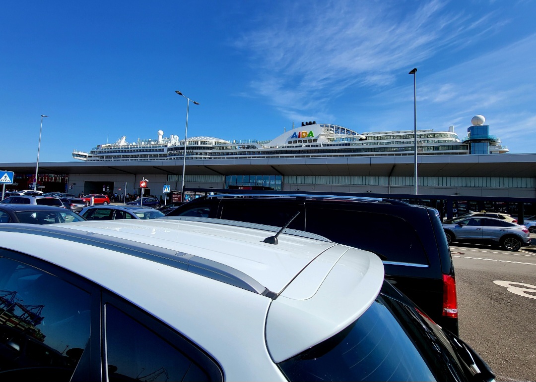 Zur Info: Den Parkplatz für die Perla-Reise im Sommer, von Steinwerder aus, hatten wir nämlich über myAIDA gebucht. Gab da einen Code (oder so?) und schien sich meiner Meinung nach nicht von der Direkt-Seite zu unterscheiden. Damit sind wir problemlos in eine der hinteren Reihen gefahren und haben unser Auto selbst abgestellt. Was uns zwischenzeitlich grübeln lies, war die Tatsache, dass die Verbindungsstraßen zwischen den Parkplätzen komplett 2-reihig zugeparkt wurden. Das konnten wir vom Oberdeck des Schiffes aus gut sehen. Da haben wir schon geschmunzelt, dass wir länger auf dem Schiff bleiben müssen. Außerdem haben wir uns gefragt, wer die Autos denn einparkt oder auch wieder wegfährt. Beim Ausschiffen haben wir uns super viel Zeit gelassen und waren niemals um 10 Uhr am Parkplatz sondern eher deutlich nach 11 Uhr. Uns fiel aber auf, dass der Code, den wir vom Schiff (an der Rezeption) abgeholt haben oder auf die Kabine bekommen haben (ich weiß echt nicht mehr wie, bin gut im Vergessen) problemlos funktionierte, während einige andere (die erst kurz vor Abfahrt den Code holten) das Ticket nicht "bezahlen"(auslösen) konnten. Bei unser Abfahrt war es dann natürlich super entspannt, kein Gedrängel und die "zwischengeparkten" Autos waren natürlich auch längst weg...