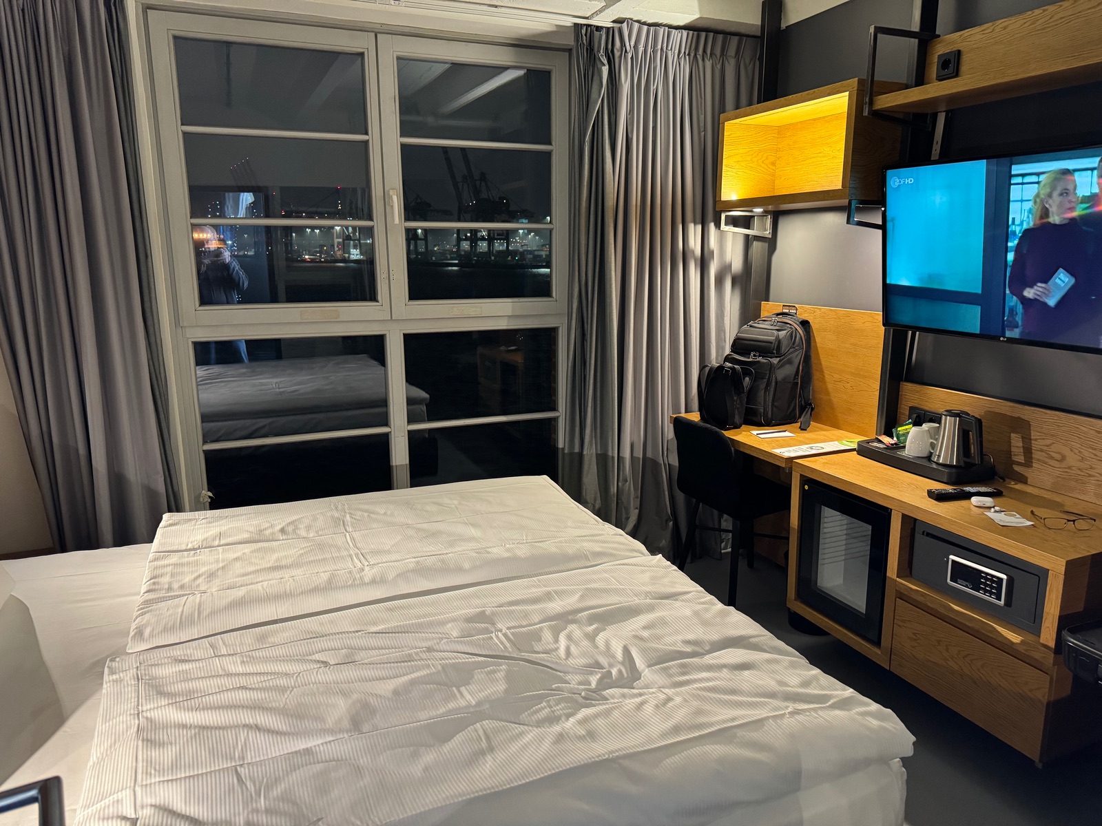 Den bessere Panoramblick bietet das Empire Riverside mit bodentiefen Fenstern in der Kategorie Riverview als Eckzimmer. Von dort sieht man dann auch das Schiff in Steinwerder gut!!