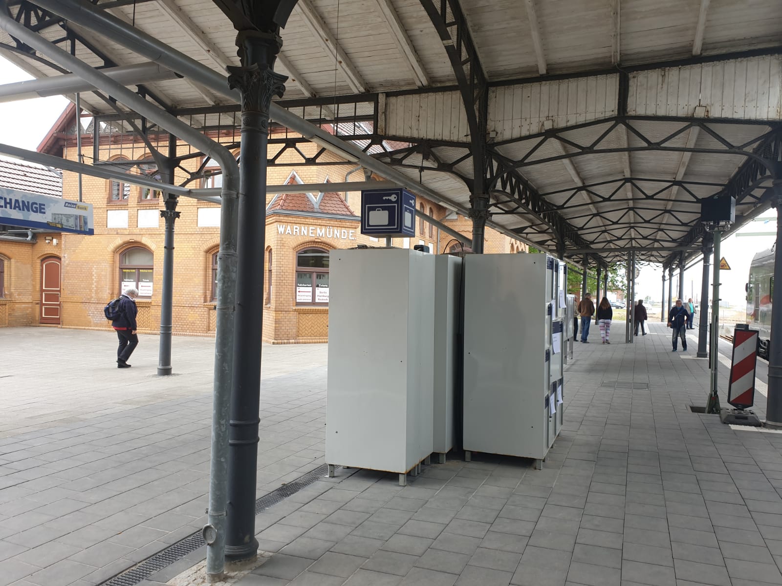 54 Schließfächer zur Gepäckaufbewahrung stehen am Bhf. Warnemünde den Reisenden zur Verfügung...