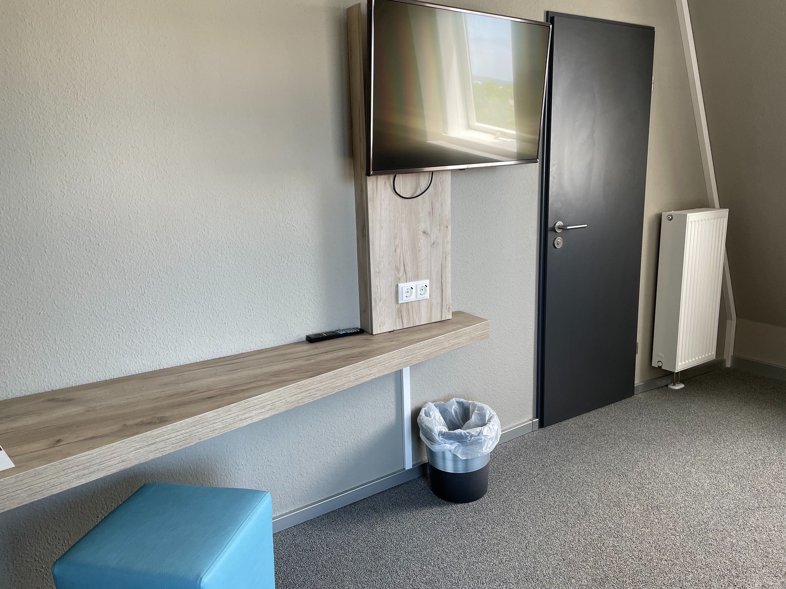 Kein Safe im Zimmer, aber es gibt Notfalls Schließfächer auf dem Flur.