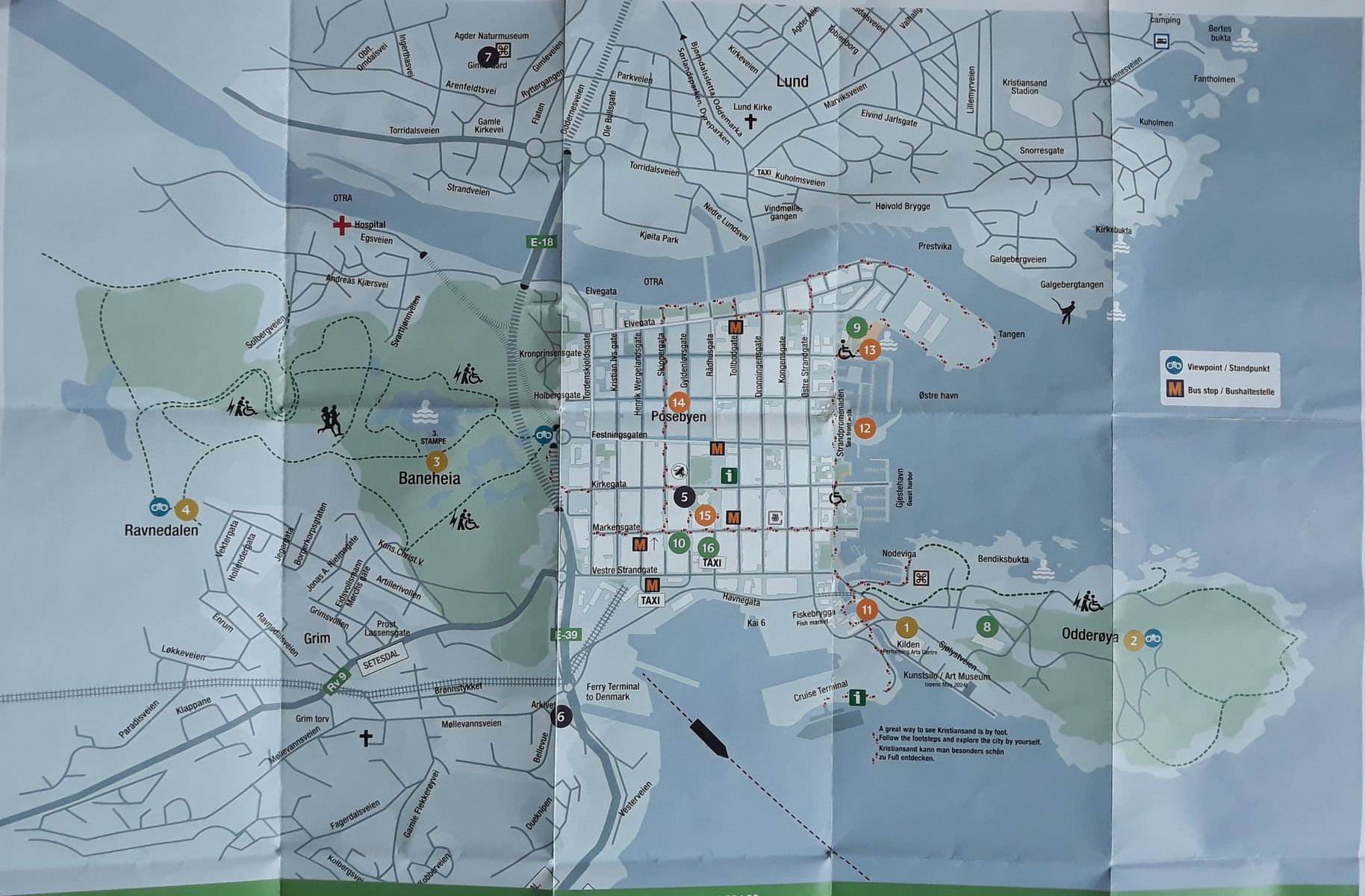 Karte gibt es bei der Tourist-Info. Nette entspannte Runde von ca. 8km. Das Naherholungsgebiet Baneheia ist landschaftlich sehr schön und sollte besucht werden.
