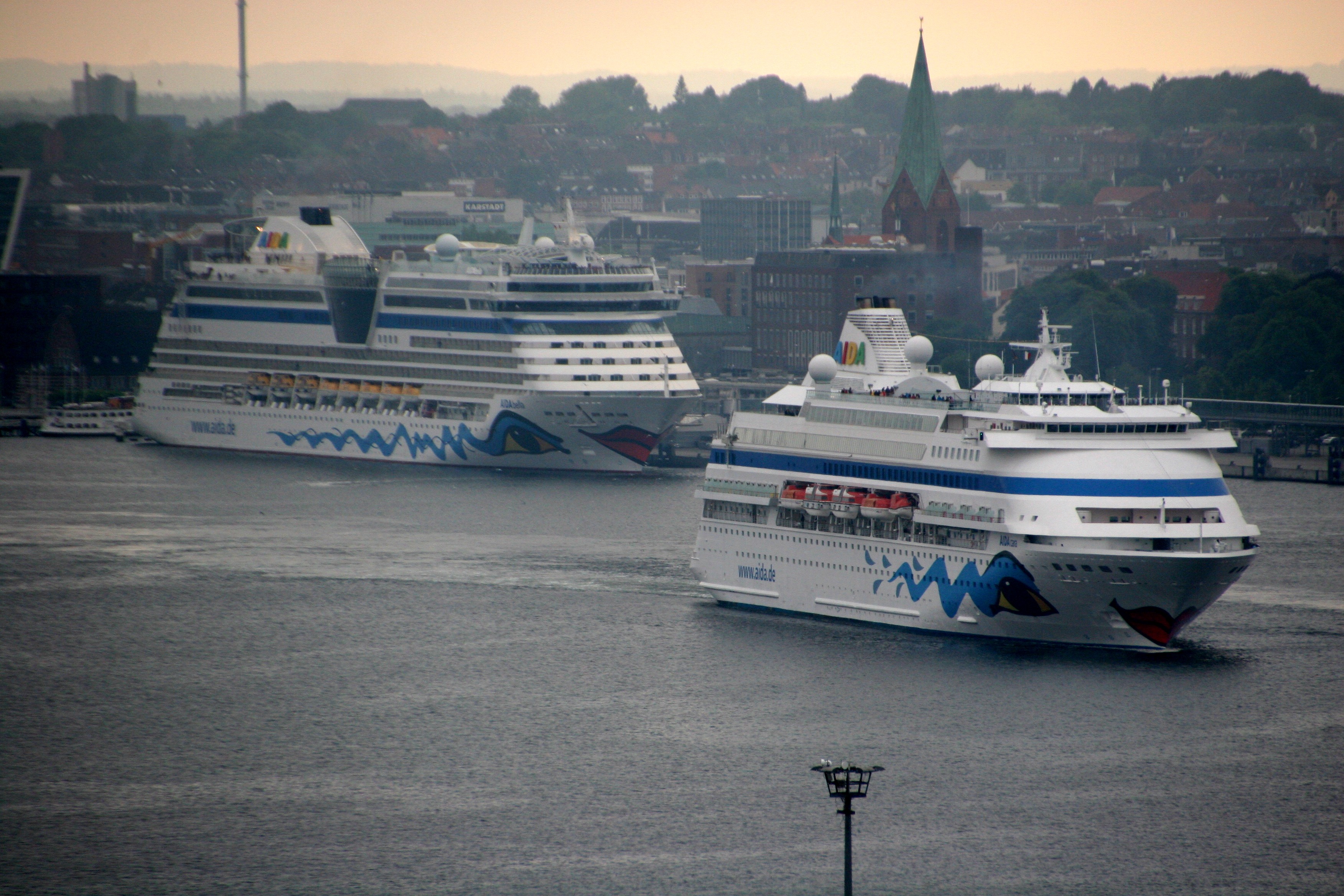 beim heutigen Schwesterntreffen (27.05.2018) der AIDAcara und der AIDAbella am Ostseekai in Kiel wurde den AIDAfahrerinnen/AIDAfahrern aber wirklich ein schönes Panorama geboten als die AIDAcara mit "Schlepperhilfe" quer vor der AIDAbella am Ostseekai auf dem "Teller" gedreht hat