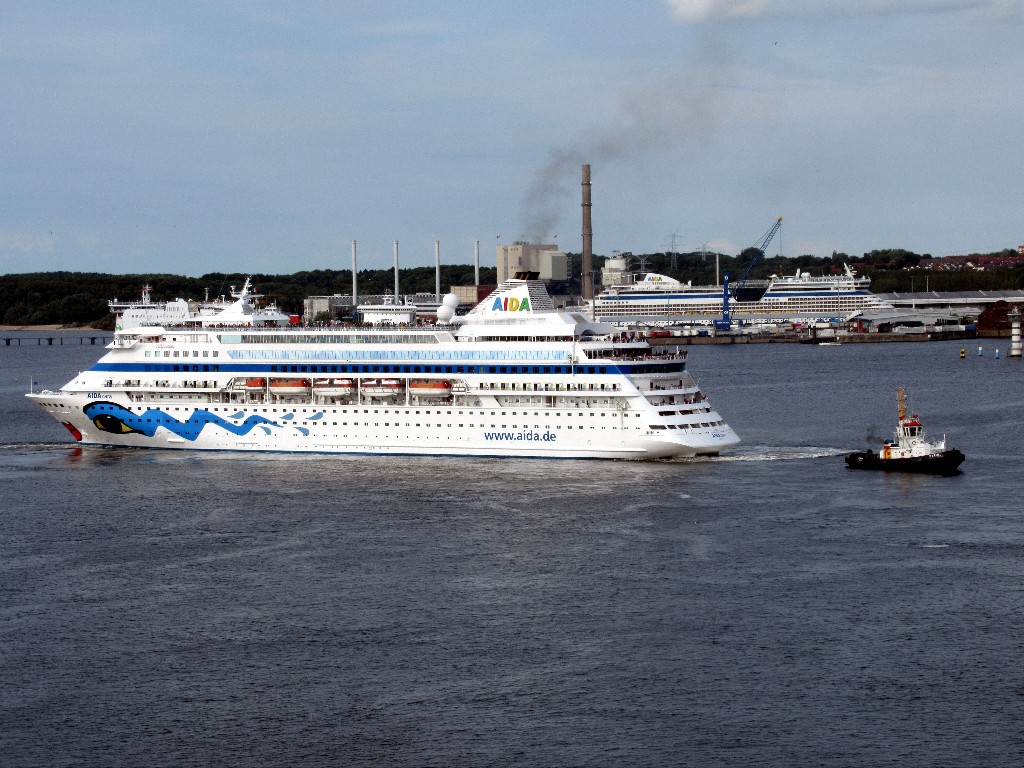 Ich war heute schon um 09:00h mit einem Hafenschlepper auf der Kieler Förde unterwegs und habe mir die AIDAcara und AIDAbella von der Wasserseite unter einem azurblauen Himmel am Ostseekai angesehen