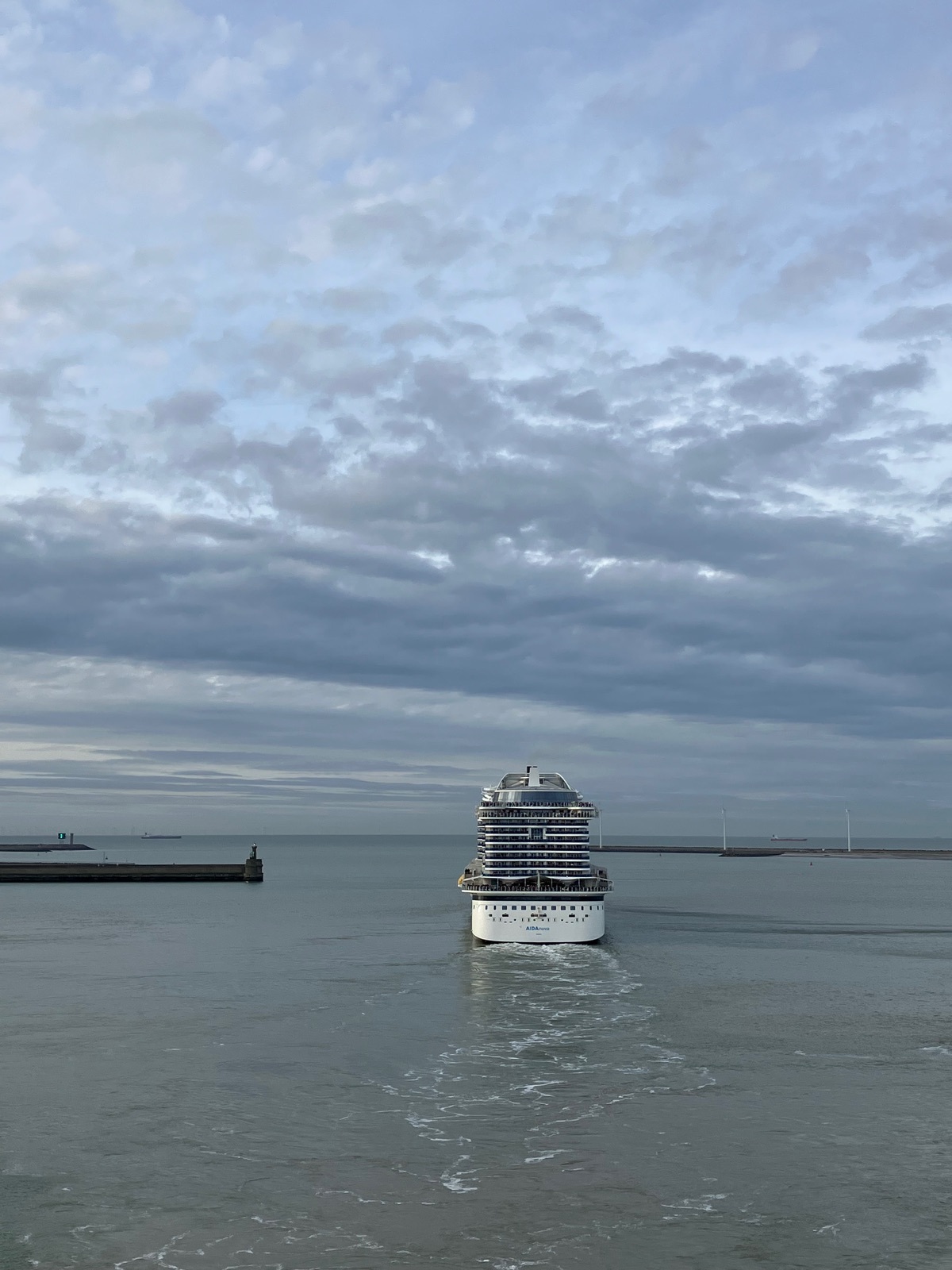 Wir verabschieden die nova nachher. Deren Sail Away sollte eigentlich um 17 Uhr sein, aber es wird sich verzögern, da die Schlange zurück durchs Terminal gerade noch über den kompletten Busparkplatz ging.