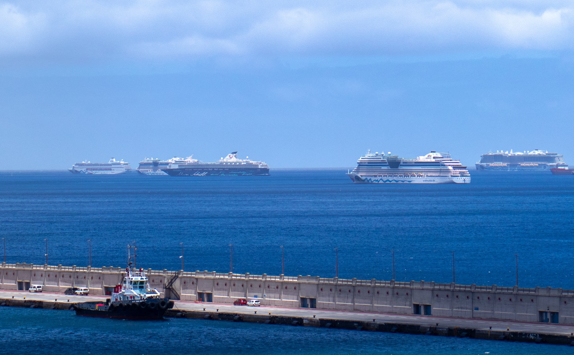 Ein Schwesterntreffen der besonderen Art heute vor 3 Jahren vor Teneriffa: Aufgenommen von der Perla sehen wir von links: Mira, Luna, MS Herz (die Schwester im Geiste), Mar und Nova. Trotz des schönen Anblicks war es eher ein bedrückendes Gefühl. Zum Glück ging es für die meisten dann wieder weiter.