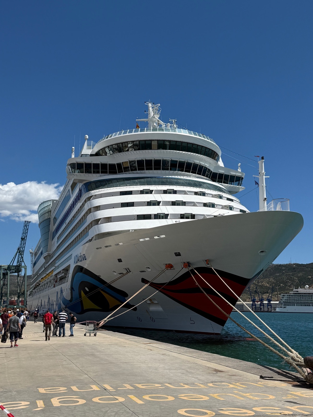 Wir waren auf unserem Rundgang in der AIDA Lounge und da habe ich gesehen, das ein Kreuzfahrtschiff weit entfernt ist. Erst später beim durchschauen der Bilder habe ich gesehen, dass es eine AIDA ist. Da war es zu spät, um hochzugehen und ein besseres Foto zu bekommen
