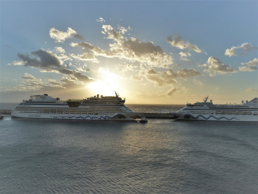 Ja wir waren auf der Sol dabei. Beim Einlaufen in Santa Cruz auf Teneriffa klickten die Apparate. Prima und Vita lagen schon im Hafen. Eigentlich hatte ich mit mehr „ Action“ der Passagiere vorgestellt. Es war doch noch sehr ruhig auf den anderen Schiffen. Das kannte ich von anderen Treffen ganz anders.