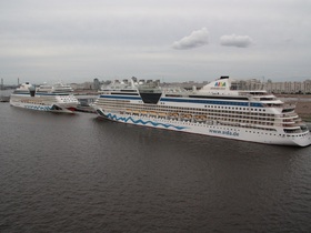 AIDAbella und AIDAcara im Kieler Hafen