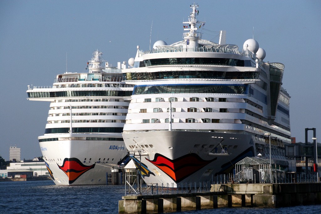 Die AIDAprima am Liegeplatz 27 und die AIDAluna am Liegeplatz 28