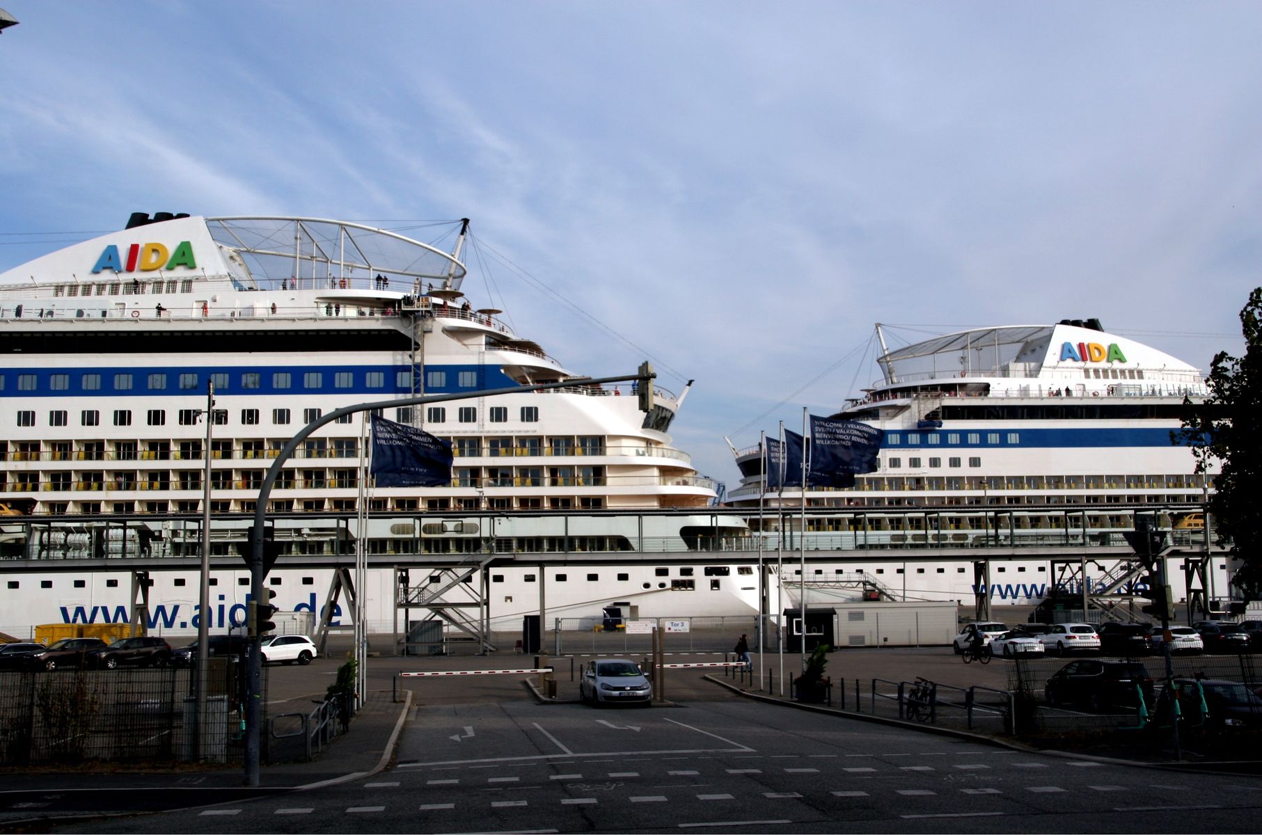 Ein lautstarkes "Schwesterntreffen" mit der AIDAbella und AIDAluna am Ostseekai in Kiel