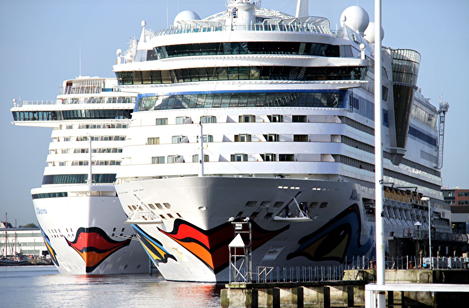Ein lautstarkes "Schwesterntreffen" mit der AIDAbella und AIDAluna am Ostseekai in Kiel