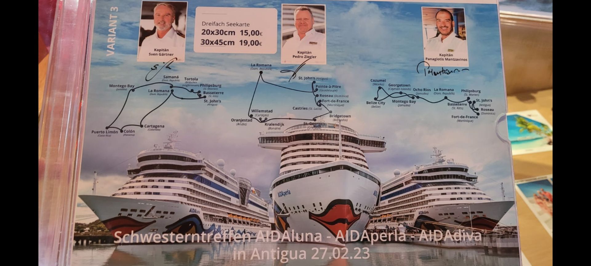 Hier gibt es noch ein Video vom "Dreifachanlauf" mit der AIDAdiva , AIDAluna und AIDAperla in Antigua