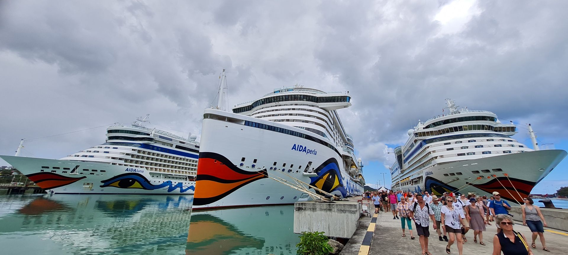 Hier gibt es noch ein Video vom "Dreifachanlauf" mit der AIDAdiva , AIDAluna und AIDAperla in Antigua