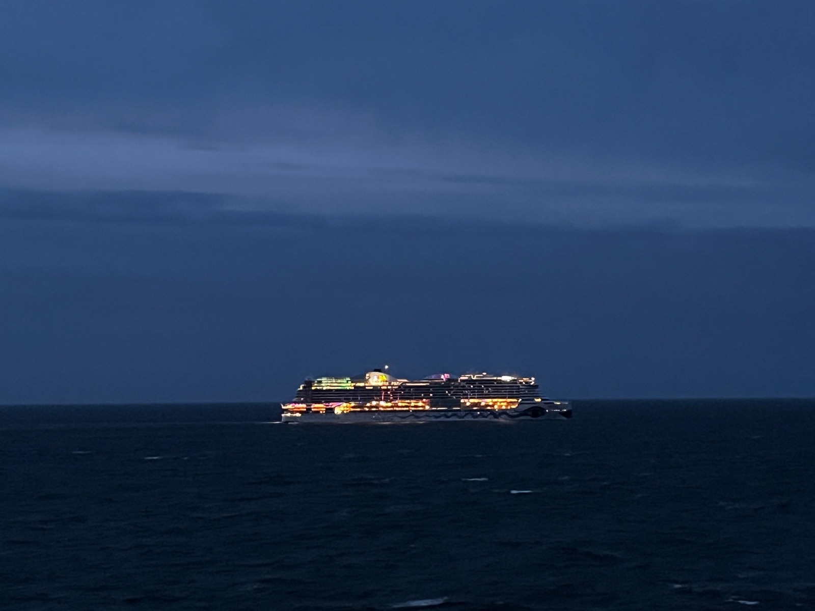 Leider geschah das so überraschend (wahrscheinlich haben wir bei den Ansagen nicht aufgepasst), dass nur das Handy zur Stelle war...Bei uns ist das leider auch total untergegangen, ich glaube, es gab gar keine Ansage. Ich hatte zufällig in die Seekarte im Bordportal geschaut, wo die aura auch mit der aktuellen Position eingetragen war, und bin sofort raus, um nachzuschauen, ob man sie sieht. 😄