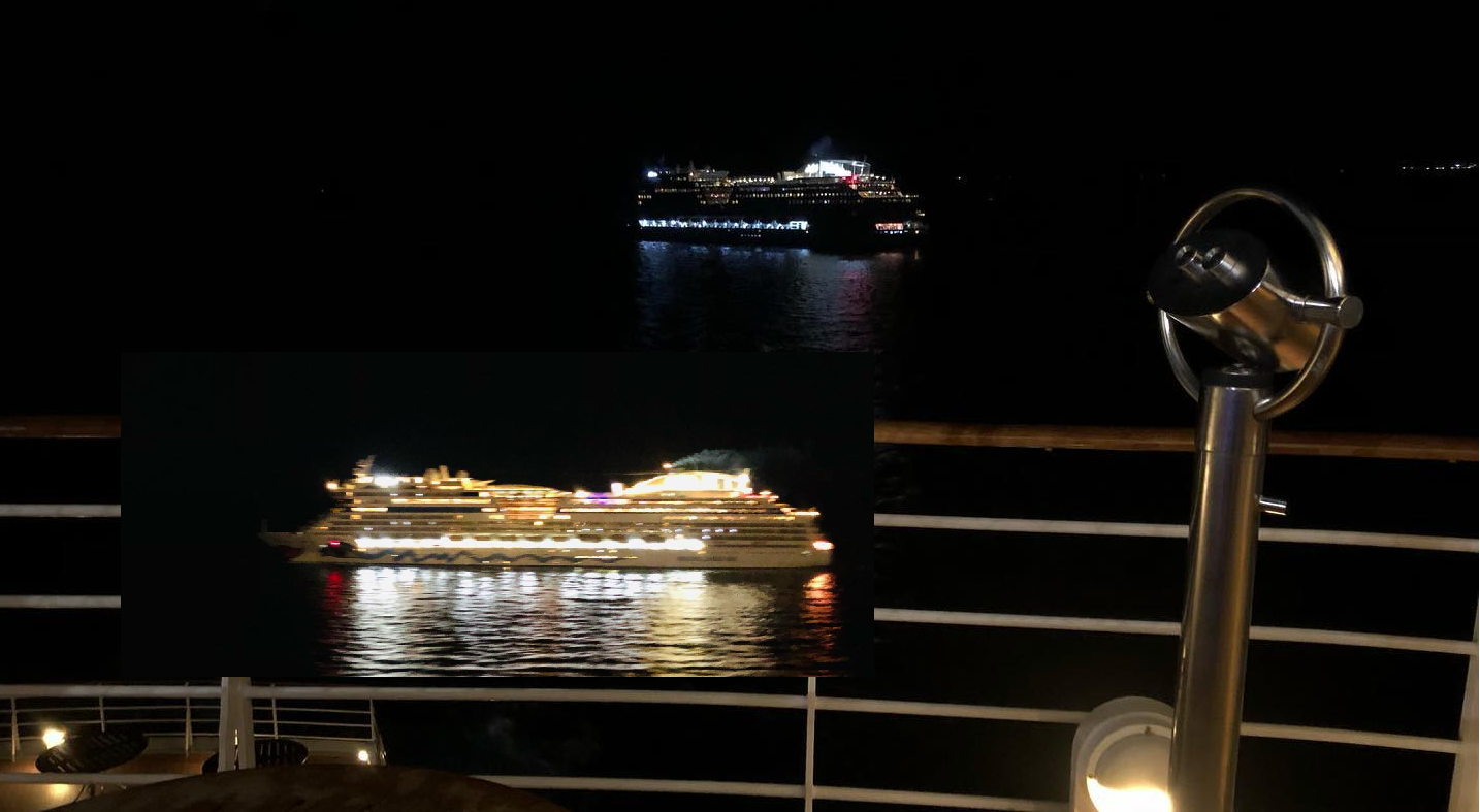 Leider geschah das so überraschend (wahrscheinlich haben wir bei den Ansagen nicht aufgepasst), dass nur das Handy zur Stelle war...Bei uns ist das leider auch total untergegangen, ich glaube, es gab gar keine Ansage. Ich hatte zufällig in die Seekarte im Bordportal geschaut, wo die aura auch mit der aktuellen Position eingetragen war, und bin sofort raus, um nachzuschauen, ob man sie sieht. 😄