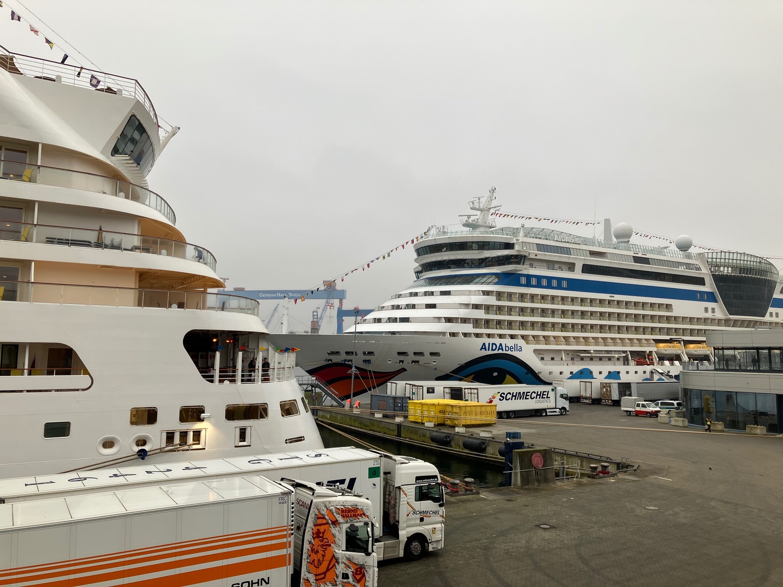 Die Schwestern AIDAluna und AIDAbella am 27.10.2024 am Ostseekai in Kiel