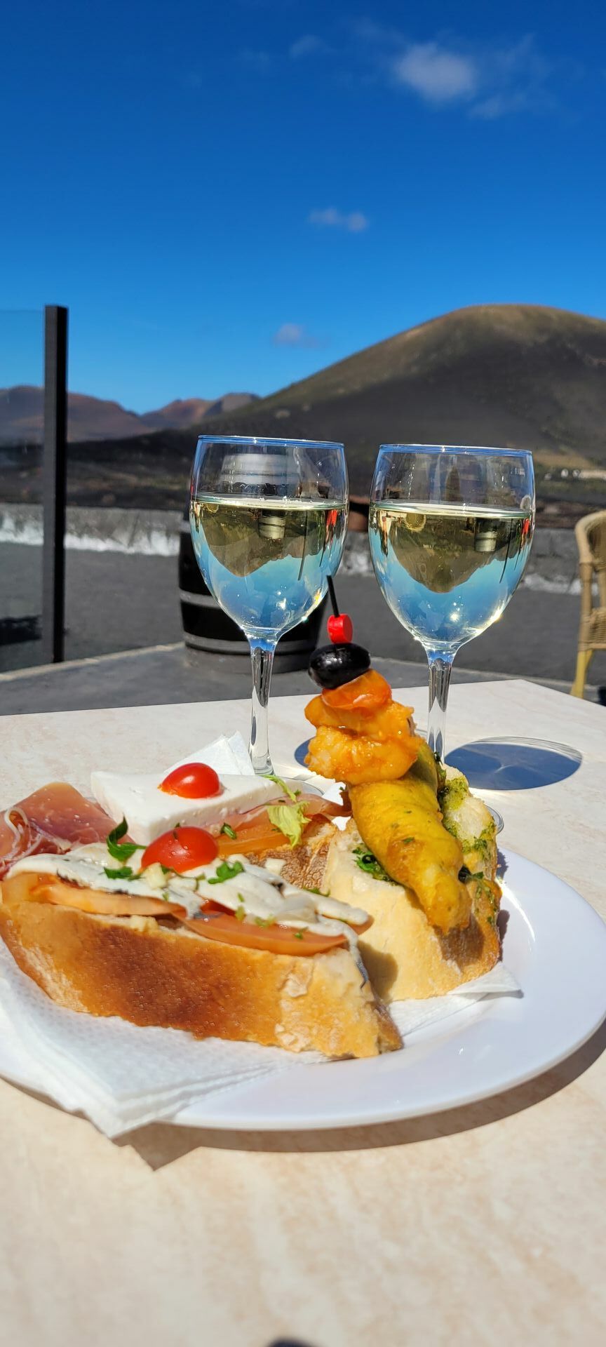 La Geria durch das Weinanbaugebiet zu einer netten Lokalität um dort eine Kleinigkeit zu essen und den Wein zu probieren.
