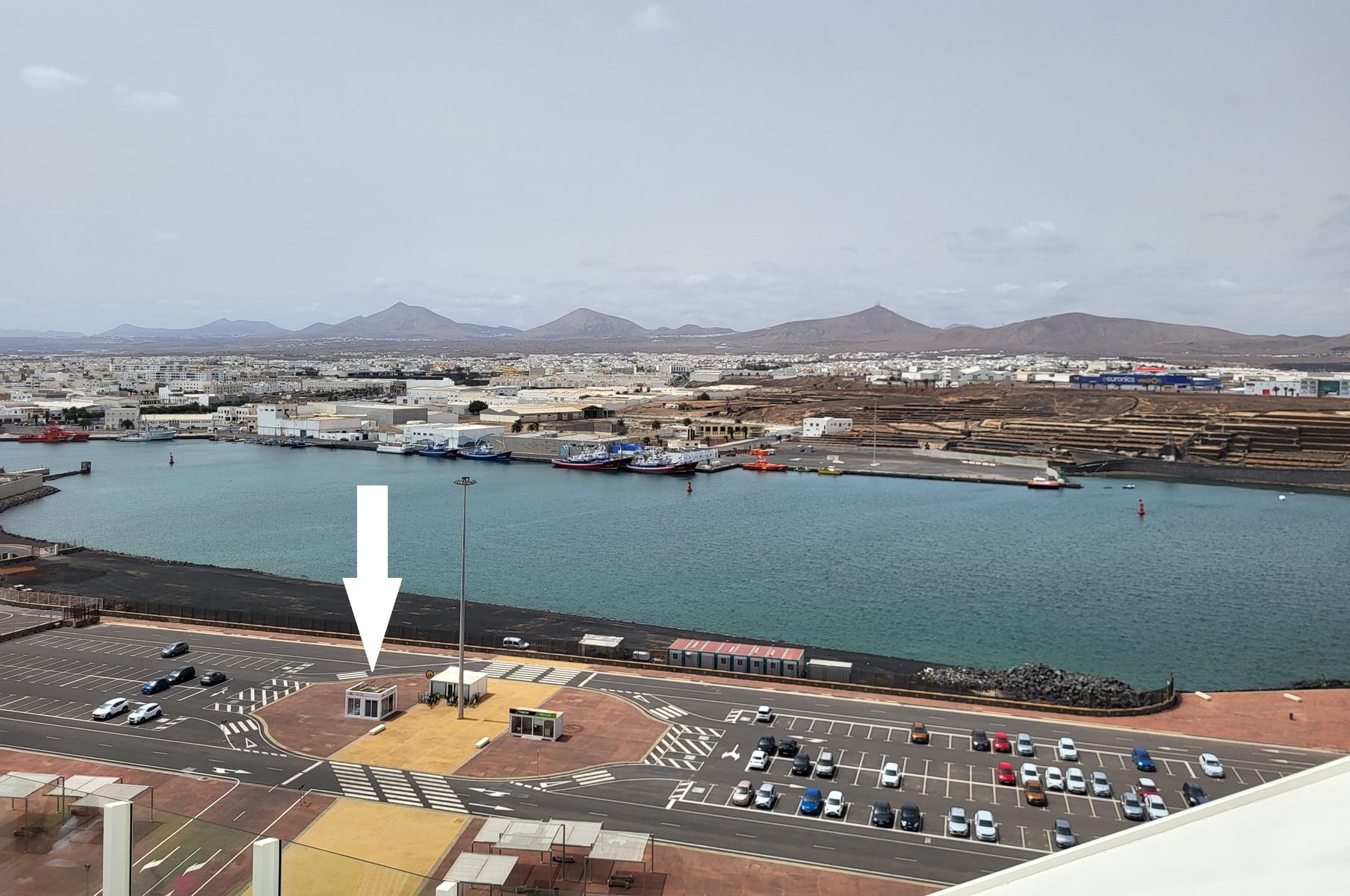 Dh wenn man den Steg Rtg Land läuft ganz am Land Übergang bevor man auf den Weg nach Arrecife abbiegt, da ist ein gr. Platz wo die bestellten Mietwagen und fahrräder usw. standen