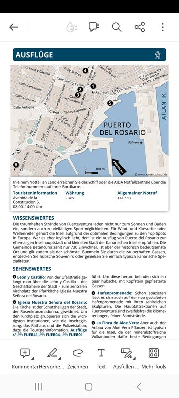 Wenn ihr an der Isla de Cruces liegt (ist wahrscheinlich) sind es 2 km bis zum Anfang der Einkaufsstraße und zur Brücke zum Castillo. Liegt das Schiff allerdings am Pier Ensenada de los Marmoles ist es zu Fuß doppelt so weit. Allerdings gibts da eine Bushaltestelle (Linie 3) der Bus fährt ca. alle 20 Min in die Stadt.